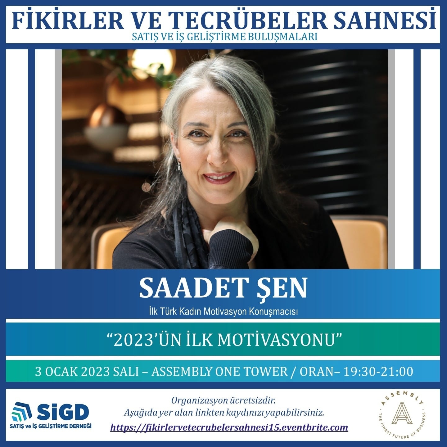 2023'ün ilk buluşmasını İlk Türk Kadın Motivasyon Konuşmacısı Saadet Şen ile gerçekleştirdik. Saadet Şen'i ikinci kez Fikirler ve Tecrübeler Sahnesi'nde ağırladık.
