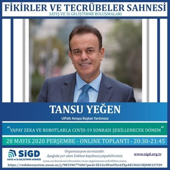 Mayıs 2020 konuğumuz ulusal ve uluslararası büyük firmaların üst düzey yöneticisi Tansu Yeğen idi. Tansu Bey, gelecek teknolojilerinin şimdiden dünyamızda nasıl yer bulduğunu ve bulacağını bize tecrübesi ile aktardı.