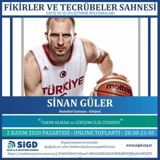Kasım 2020 üyeler toplantısında konuğumuz Türkiye’nin en değerli basketbolcularından Sinan Güler idi. Sadece basketbolu değil, bir girişimci ve takım oyuncusu olarak da ürettiklerini ve spor hayatını bizimle paylaştığı güzel bir akşam oldu.