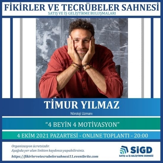Fikirler ve Tecrübeler Sahnemizde ilk defa alanında oldukça tecrübeli bir Nöroloji Uzmanı olan Timur Yılmaz'ı ağırladık. Timur Yuılmaz motivasyona çok yönlü ve çok farklı bir bakış açısı ile yaklaşarak, bilimsel olarak kanıtlanmış ve hayatımıza yön veren bir çok kavram ve kuramı SİGD üyeleri ile paylaştı.